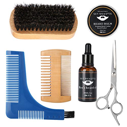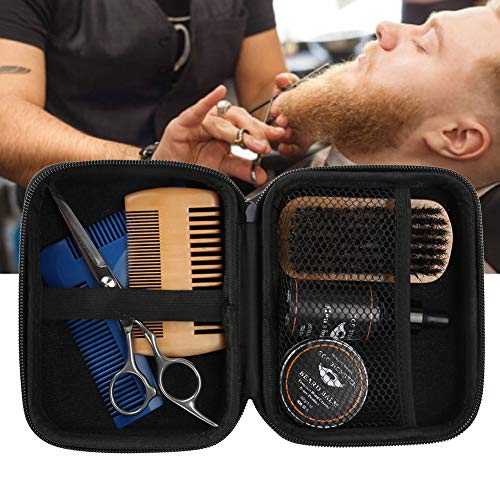 Set per barba e baffi da uomo, 7 pezzi, portatile, per acconciare la barba, in crema, con spazzola ad olio, pettine e forbici, per la cura dei capelli, adatto per capelli e barba