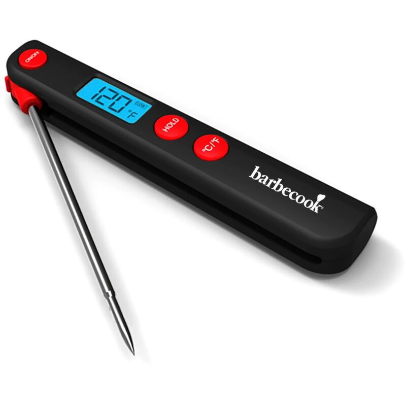 Colore: nero e rosso. Termometro digitale a batterie Barbecook Accessori indispensabili per i BBQ della marca Barbecook . Con il termometro Tascabile digitale, controllate la temperatura dei vostri cibi velocemente! La sonda di temperatura in acciaio inox è facile da pulire e di dimensioni adatte ad ogni tipo di cottura, dalla bistecca all'arrosto di grandi dimensioni.