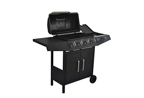 Barbecue a Gas,Compatto con 4+1 Bruciatore,BBQ Gas per Pietre Laviche,con Fornello Laterale,Controlli della Temperatura
