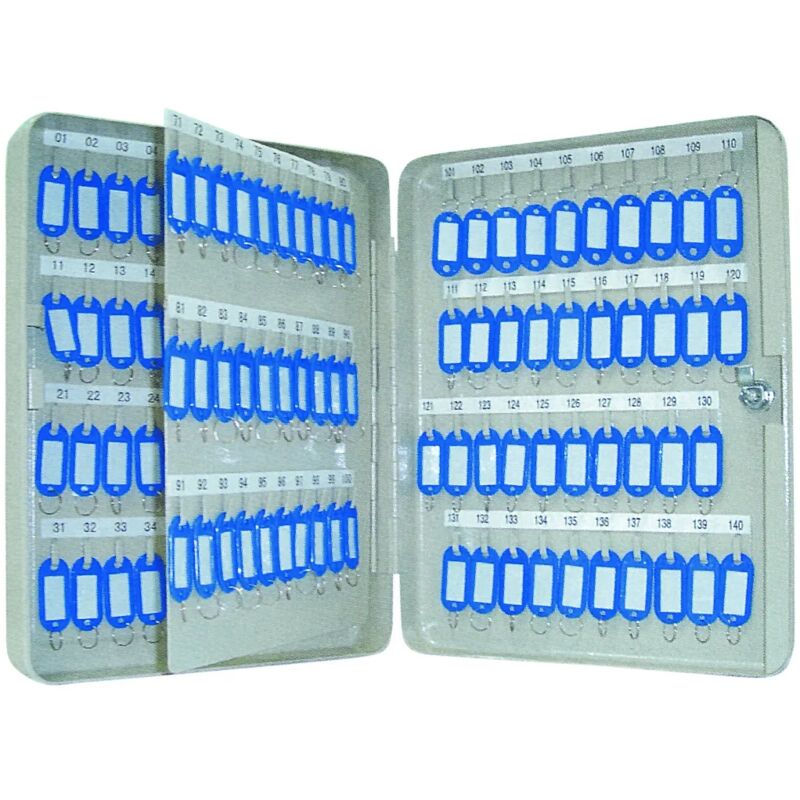 Cassetta portachiavi in ferro da 140 posti. Chiusura con chiave,completa di portachiavi numerati. Dimensione H.370 L.280 P.80 mm.