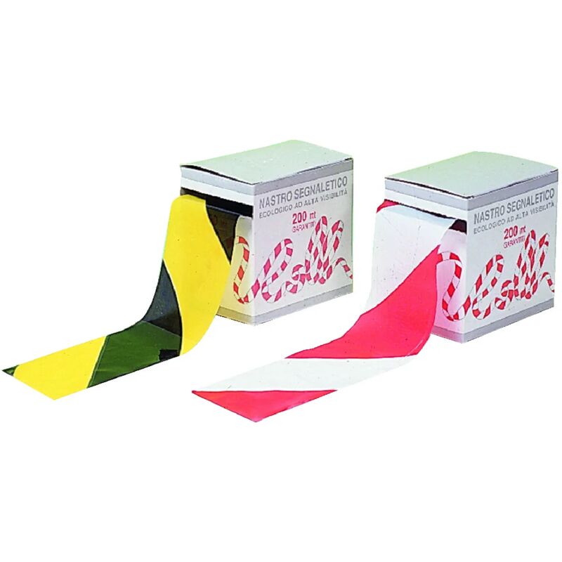 Nastro segnaletico nero-giallo in polietilene a stampa bifacciale economico e riutilizzabile. Rotolo mt.200 x mm.70.