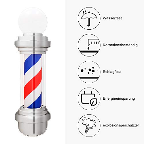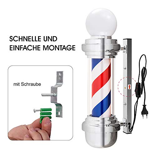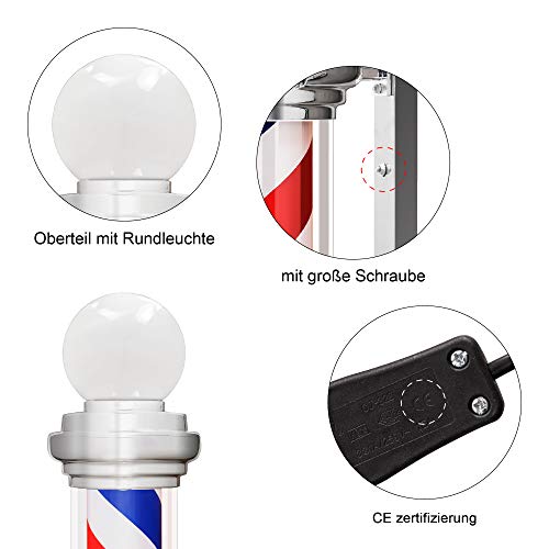 Barberpub Barber-Pole L018B - Asta da barbiere con lampada a sfera a LED, girevole, classica colonna con strisce rosse, bianche e blu