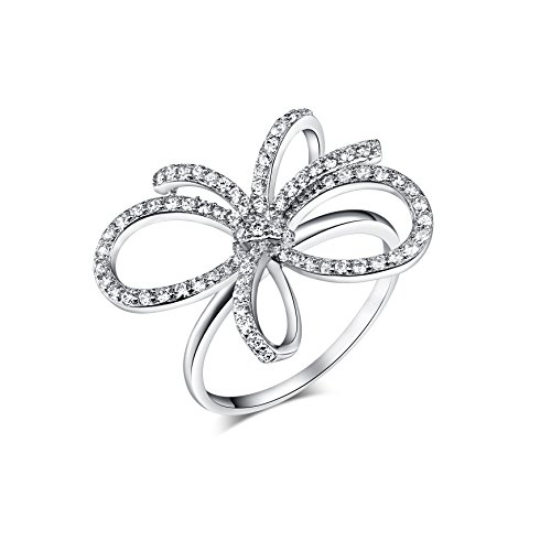 Barbie anello da ragazza e donna,anello bianco e rosa, dalla forma di farfalla,anello elegante, anello di squisita fattura #BSJZ037 (Argento925+zircone bianco+placcato in oro bianco, diametro 16.6mm)