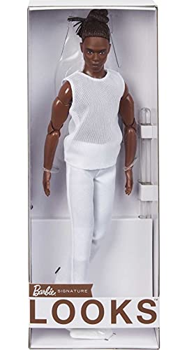 Barbie- Bambola Ken Afroamericano Signature Barbie Looks Ken, Snodato Moro con Chignon, Giocattolo per Bambini 6+Anni, GXL14