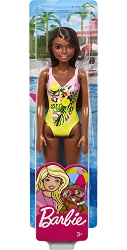 Barbie- Bambola Mora con Costume da Bagno Floreale Rosa e Giallo Giocattolo per Bambini 3+ Anni, GHW39