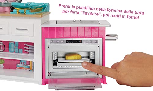 Barbie aiuta i piccoli buongustai a divertirsi con la Cucina dei Sogni con luci, suoni, formine di cibi, plastilina in 5 colori e oltre 20 accessori, dando vita a un divertente e fantasioso gioco di ruolo!