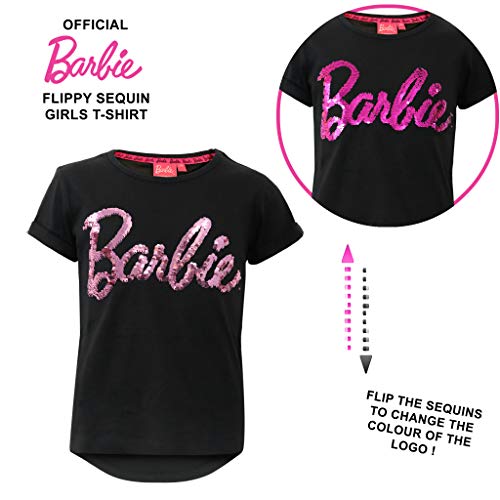 Barbie Logo di Testo Ragazze Reversibile Paillettes T-Shirt Nero 116 | età 5-14, Barbie Regali, Moda Top, i Vestiti dei Bambini, Scherza Il Regalo di Compleanno di Idea
