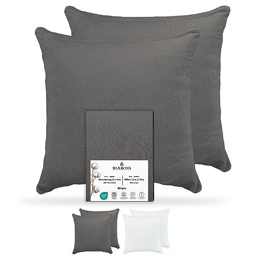 BARBONS Federe Cuscini Letto Cotone 60x60 cm - 165 g/m² 100% Cotone Certificato Oeko-TEX Set di 2 Copricuscino Letto Federe Antiacaro Ipoallergenica Morbida e Traspirante(60x60-Antracite)