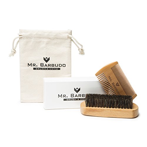 Mr. Barbudo - Spazzola da barba con setole di Cinghiale, con pettine abbinato e astuccio Premium