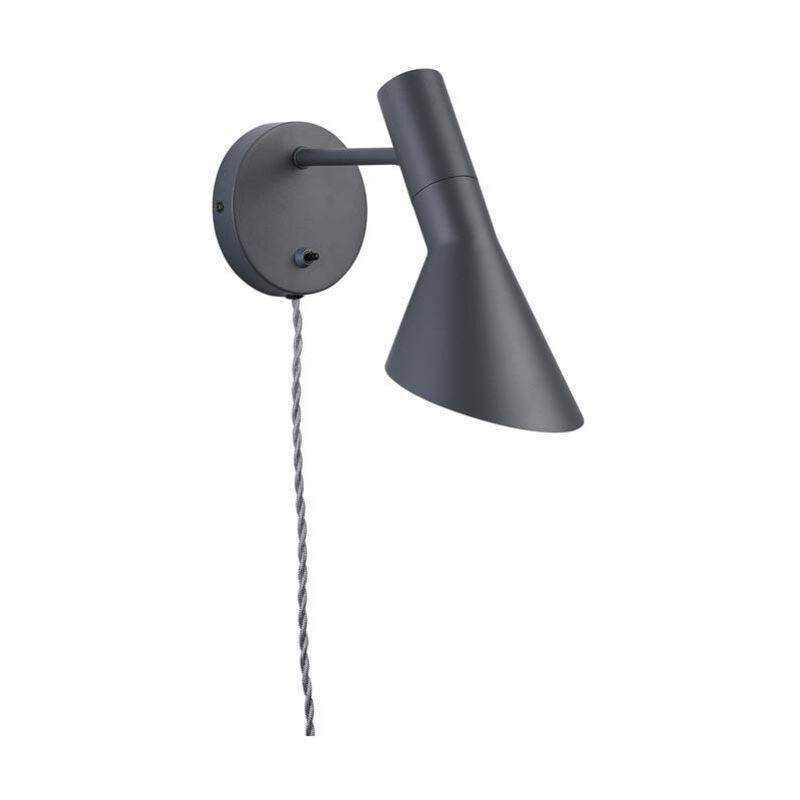 Lampada da parete dal design contemporaneo ed elegante con cavo e spina, realizzata in alluminio con finiture di alta qualità. Dalle linee pulite e geometriche, ha un paralume orientabile che direziona la luce con precisione, fornendo un'illuminazione morbida e mirata. Disponibile nei colori bianco, nero e grigio. **Lampadina E27 - non inclusa**