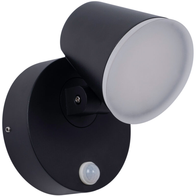 Applique LED orientabile dal design moderno ed elegante, realizzata in alluminio con finitura nera. Incorpora un sensore di movimento PIR che permette di regolare il livello di luce e il tempo di accensione dell'apparecchio, garantendo un grande risparmio energetico. Ha una potenza di 12,5W e offre un'illuminazione omogenea in una tonalità bianca calda. Grazie al grado di protezione IP54, è adatta per l'installazione all'esterno.