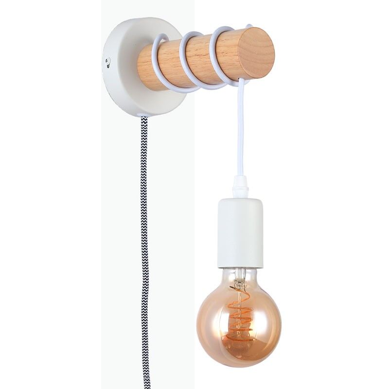 Lampada da parete in legno in stile retrò. Lampada da parete di design con pratico cavo intrecciato, in bianco e nero, e cavo con interruttore per accendere e spegnere comodamente la lampada. Realizzato in legno e alluminio, offre uno stile minimalista e retrò per qualsiasi ambiente interno della casa o dell'azienda. Con grado di protezione IP20, l'applique è destinata esclusivamente all'uso interno. Si utilizza principalmente per l'illuminazione di corridoi, camere da letto, ristoranti, sale studio, bar, hotel, ecc. Il cavo permette di personalizzare l'altezza avvolgendolo intorno alla struttura cilindrica in legno. Con attacco E27, lampadina E27 non inclusa. Ideale per le lampadine a filamento che conferiscono uno stile retrò alla lampada.