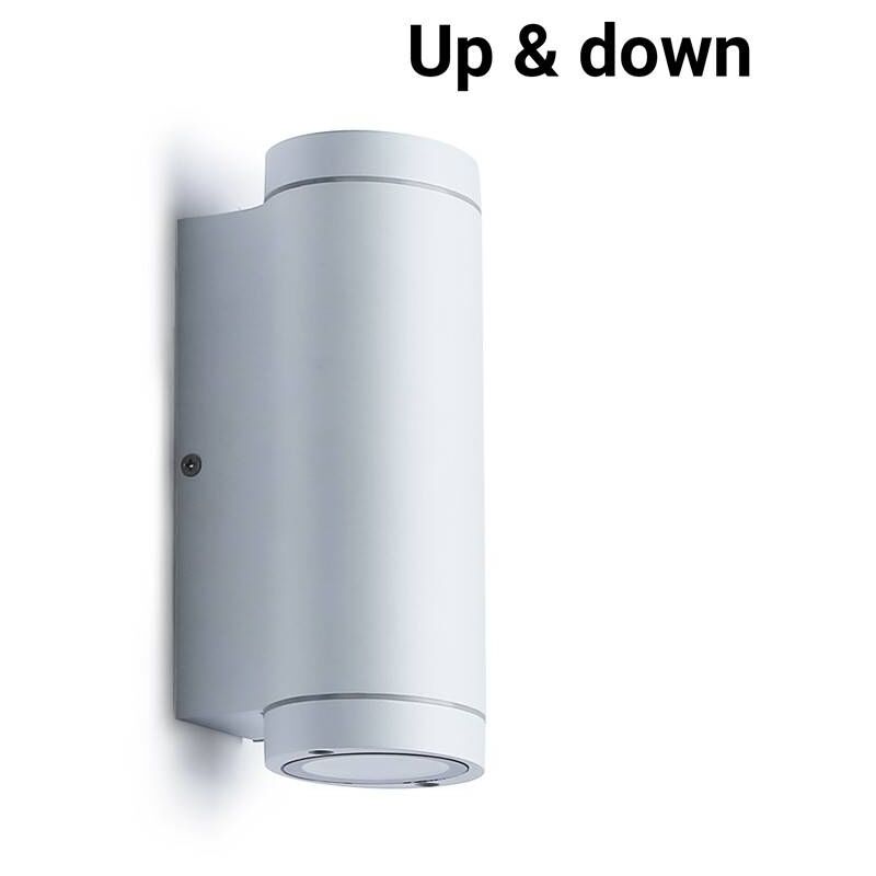 Appliqueda esterno con doppio portalampada GU10 con emissione di luce verso l'alto e verso il basso. Design cilindrico, moderno, elegante e minimalista. Realizzato in alluminio di alta qualità con finitura bianca o nera. Lampada da parete leggera e resistente con attacco per 2 lampadine GU10, con una potenza massima di 35W. Grado di protezione IP44, per uso esterno e interno. Ideale per l'installazione come illuminazione LED esterna in giardini, patii, balconi o in qualsiasi ambiente interno. Emette luce in due direzioni, potendo illuminare in alto e in basso o a sinistra e a destra, a seconda che lo si installi in verticale o in orizzontale. **LampadineLED GU10non incluse**.