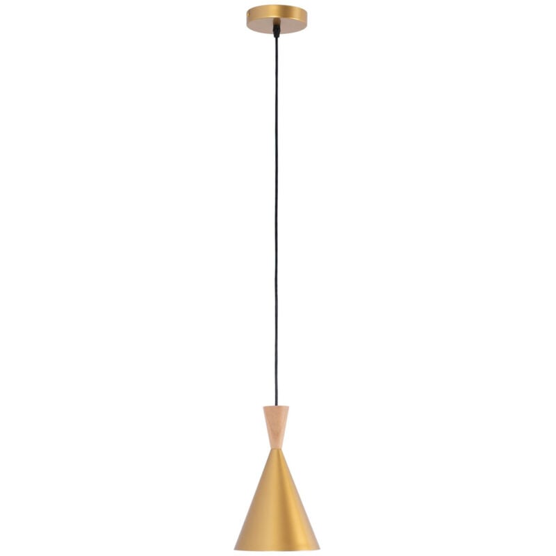 Lampada a sospensione nordica dal design elegante e minimalista, abbinabile a un'ampia varietà di stili decorativi. Realizzata in alluminio, disponibile in bianco, nero o dorato e con un dettaglio in legno chiaro sulla base, questa lampada è un'ottima opzione come illuminazione decorativa d'ambiente, che apporta modernità e stile a qualsiasi spazio. **Lampadina E27 - Non inclusa**