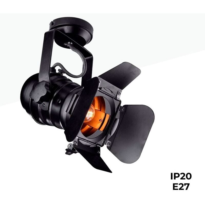 Lampada da soffitto dal design originale, ispirato ai tradizionali fari da cinema. È completamente orientabile e consente di concentrare la luce nel punto desiderato. Perfetta per illuminare e decorare la casa, i negozi, gli studi, i ristoranti o i bar. **Portalampada E27 - Lampadina non inclusa**