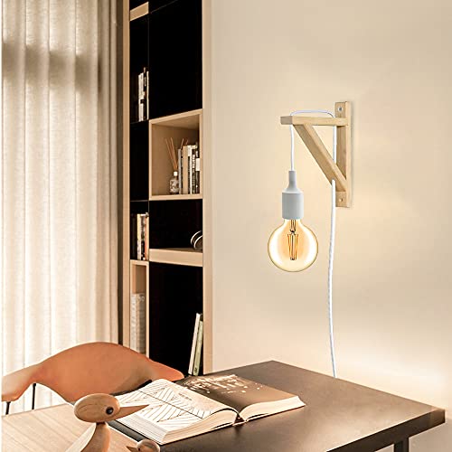Barcelona LED LN123-B Applique da parete nordica a squadra di legno e ciondolo in silicone per attacco E27, colore bianco