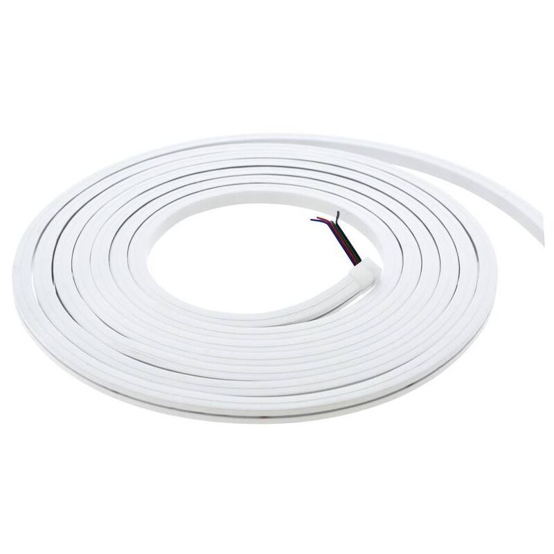 RGB LED neon flessibile. Con colori vividi e potenti. Luce definita e intensa e con un angolo di luce di 120 gradi. Con protezione IP67 resistente a urti, vibrazioni, acqua e polvere. I chip SM2835 LED ad alta densità danno al neon un'illuminazione continua. Permette di tagliare ogni 83 mm, nel segno del rame visibile all'esterno della striscia. Il neon LED emette luce su uno dei suoi lati, quindi può essere installato verticalmente o orizzontalmente, sempre fissando il suo lato opposto che non emette luce. 24V Taglio: 83mm. Il taglio iniziale può variare a seconda dell'inizio della striscia. I punti di taglio sono segnati sulla striscia con una marcatura di rame. 10x10x500mm 24V 70W IP67 SMD2835