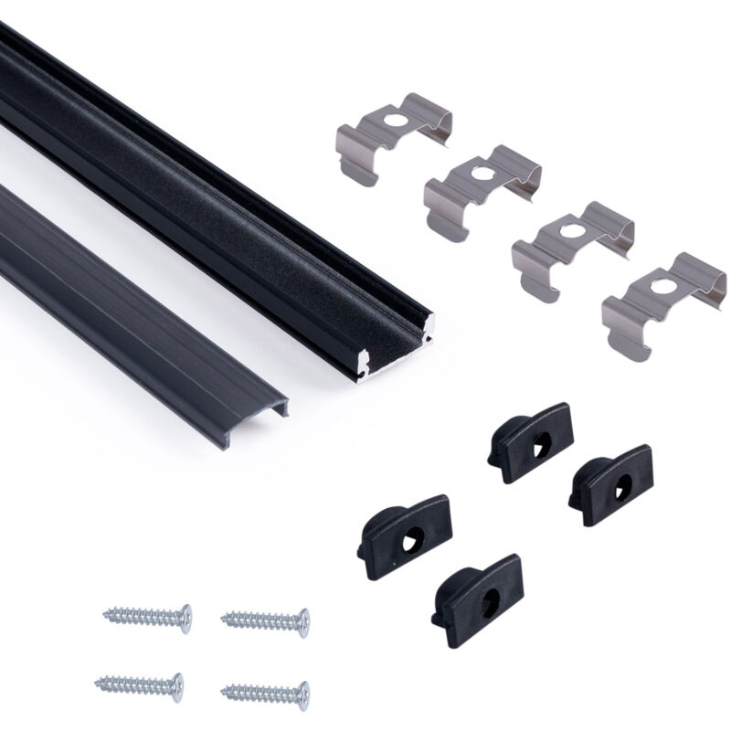 Profilo da superficie in alluminio, moderno e funzionale per varie applicazioni in cui la striscia LED deve essere nascosta. Fornisce un'illuminazione omogenea e priva di abbagliamento ed è adatto a strisce LED ≤12 mm. Disponibile nelle seguenti opzioni di colore: argento con diffusore bianco, bianco con diffusore bianco e nero con diffusore nero. ** Include diffusore, 4 tappi (con foro) e 4 clip di fissaggio**