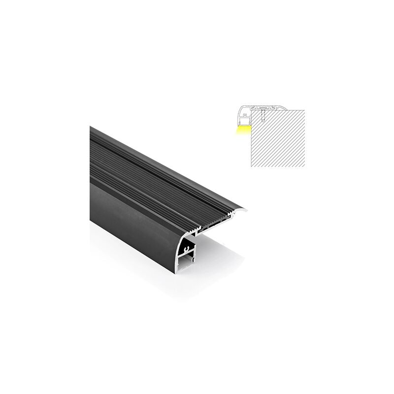 Profilo in alluminio per scale. Luce indiretta e sicura dalle strisce LED. Progettato per essere montato sul bordo delle scale, creando un gradino di illuminazione a LED. Fornisce illuminazione e sicurezza a ospiti, clienti e familiari. Può essere collocato sia all'interno che all'esterno. Proteggono e migliorano le prestazioni e la durata delle strisce LED. Ideale per l'installazione su scale domestiche, cinema, negozi, centri commerciali, hotel, ecc. Per strisce LED flessibili e rigide di larghezza