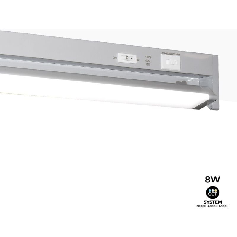 Apparecchio LED CCT regolabile e dimmerabile per sottopensili e cucine 556x61x24 mm. È possibile regolare la temperatura della luce con il selettore incorporato (2700K;
