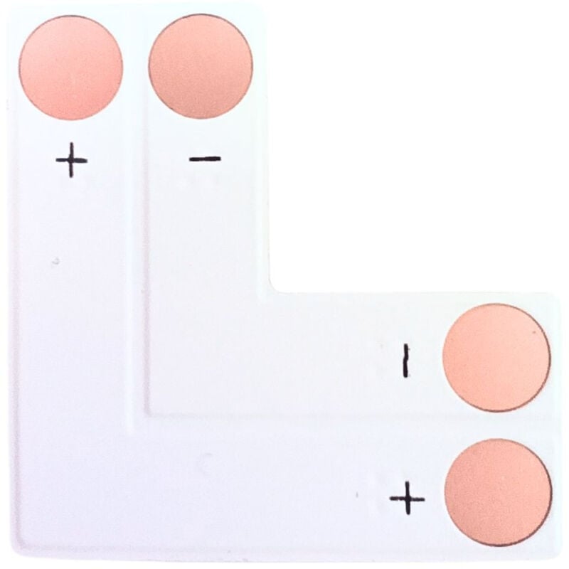 Connettore per strisce LED COB monocolore da 10 mm, per angoli, angoli a 90°. Collega facilmente le strisce monocolore nelle aree angolari senza alcuno sforzo o saldatura. Finitura professionale con struttura totalmente invisibile. Grado di protezione IP20, per uso interno. Connettore perfetto per creare angoli di 90° senza saldare, per realizzare connessioni negli angoli. Ampia tensione di 0/36V-DC. Intensità massima 5A. Collegamento da striscia LED a striscia LED. 2 Pin. 10 mm. Totalmente invisibile.