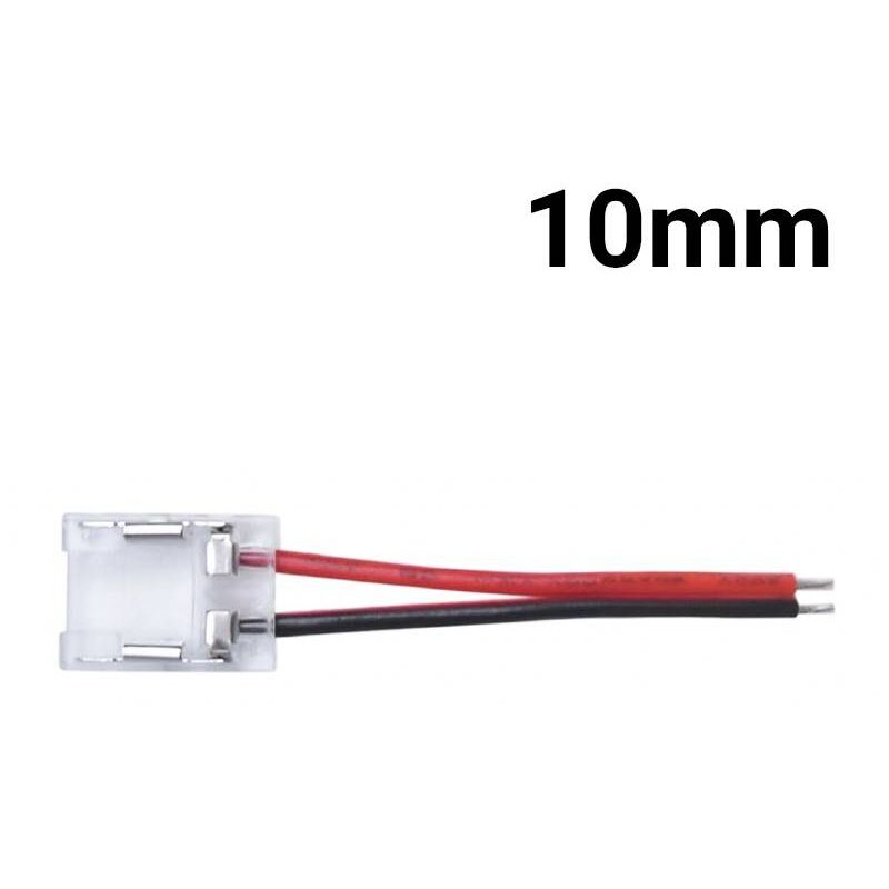 Cavo di connessione rapida monocolore per strisce LED COB monocolore da 10 mm. Il cavo è perfetto per collegare strisce e profili con controller, alimentazione, ecc. Consente di utilizzare in modo semplice e rapido le strisce LED COB monocolore tagliate senza saldare. Esclusivamente per uso interno con grado di protezione IP20. 3/24V-DC. 3.5A. 8 mm. Connettore o striscia di profilo alla corrente. Cavo centrale nero-rosso con lunghezza di 150 mm. 2 Pin.