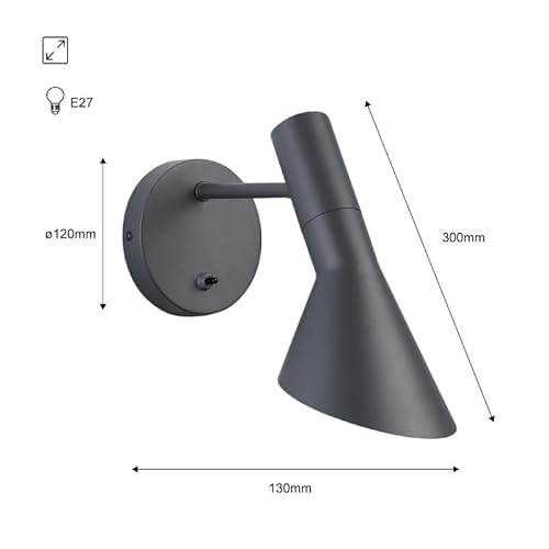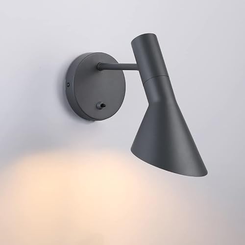 BarcelonaLED Lampada da parete moderna Lampada da parete moderna nordica con interruttore Lampada da lettura Design elegante Presa regolabile E27 Grigio per camera da letto Soggiorno