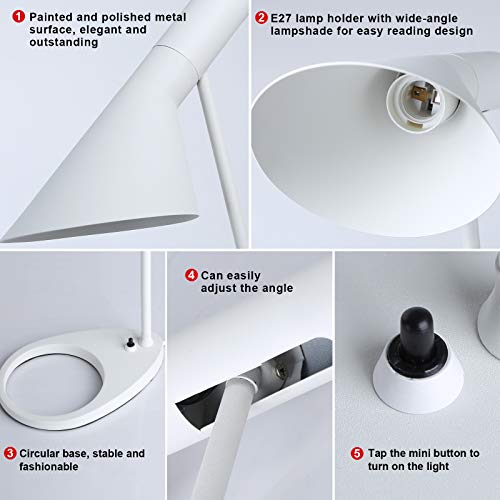 BarcelonaLED Lampada da scrivania design moderno metallo nordico E27 LED bianco per lettura studio ufficio tavolo da notte salotto camera da letto studio studio