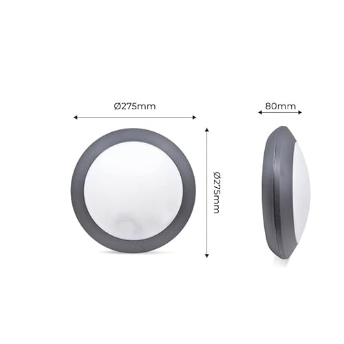 IP66 IMPERMEABILE: ideale per essere montato su pareti o soffitti, sia esterni che interni grazie alla sua classe di isolamento II e grado di protezione IP66. Ha un diametro di 275 mm e una profondità di 80 mm.