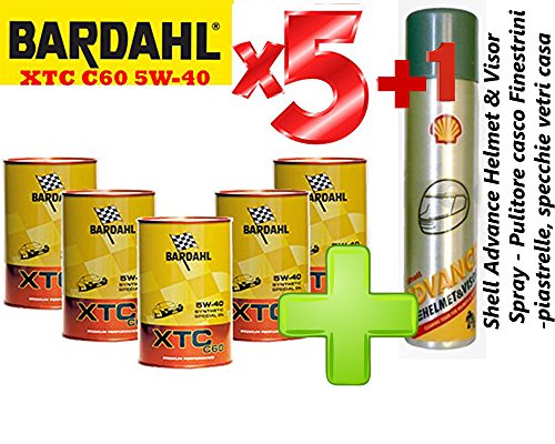 Bardahl Olio Motore Auto - Totalmente Sintetico XTC C60 5W-40 - Offerta 5 Litri + Shell Advance Helmet & Visor Spray - Pulitore Casco - Finestrini Auto - Piastrelle, specchi e vetri casa