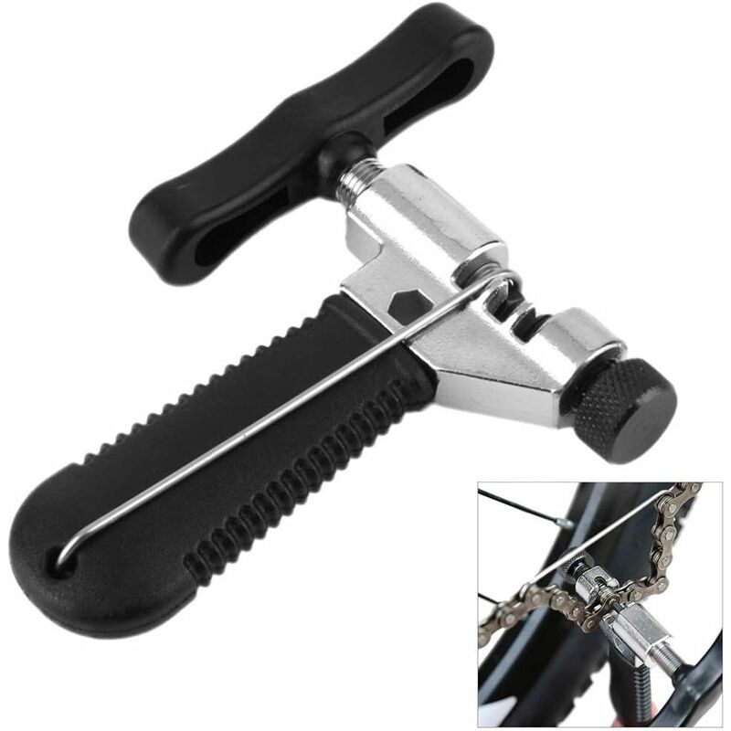 Attrezzo professionale per catena per bicicletta: sono inclusi un gancio come supporto per catena e un perno di ricambio in acciaio inossidabile, con il quale la catena può essere facilmente tenuta e montata. Universale: molto facile da usare, lo spaccacatena per bicicletta è appositamente progettato per rimuovere i perni nelle biciclette 7, 8, 9, 10 e unidirezionali e le loro catene Robusto e robusto: Lo spintore per rivetti a catena è realizzato in acciaio inossidabile e plastica di alta qualità, molto robusto e robusto, non si piega e si deforma facilmente. Design intelligente: facile da spezzare, facile da riallacciare - l'esclusiva scanalatura sulla parte superiore rende facile vedere fino a che punto si estende il perno e rimuovere la catena tagliata con il perno dall'utensile Facile da usare: basta svitare un pezzo e inserire la catena. Descrizione del prodotto Passaggio: 1. Allentare entrambe le estremità della vite. Il bullone banjo (di fronte al perno) deve essere
