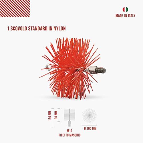 Scovolo in nylon da 200mm molto resistente: rimuove la fuliggine e non riga i tubi delle canne fumarie in inox e smaltate. Grazie al perno filettato M12 è compatibile con tutti i prodotti della linea BARETTO.