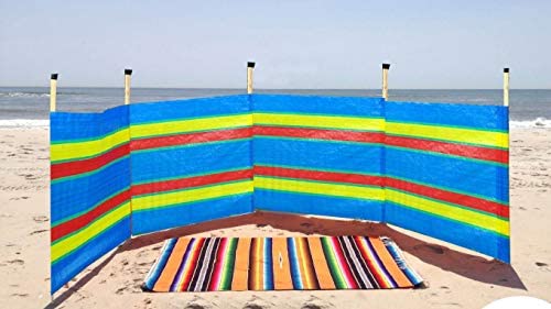 Bargains Hut 4 5 6 8 10 - Paravento in legno, per spiaggia, campeggio, roulotte, vacanze, Multi-coloured, 5 Poles (4ft High x 9ft Long)