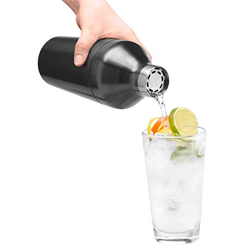 Funzionalità sorprendente: il set contiene uno shaker con setaccio integrato, pinza per ghiaccio e pestello. Il filtro integrato mantiene il ghiaccio e i pezzi di frutta