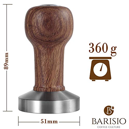 BARISIO Tamper per espresso da 51 mm, in acciaio inox, con manico ergonomico in vero legno, set di accessori per timbri da caffè, con tappetino in silicone