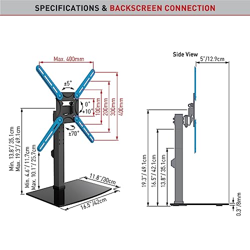 CARATTERISTICHE - Il supporto TV si adatta alla maggior parte dei televisori da 13-65 pollici fino a 36 kg. Adatto a televisori con VESA (staffa fori di montaggio modelli) 200x100, 200x200, 300x300, 300x400, 400x200, 400x300, 400x400 mm e non VESA fino a 400x400 mm.RPA2023FUNZIONALE. ITY - Per fornire un migliore punto di vista, il supporto ha 3 opzioni di regolazione dell'altezza, gira vicino alla piastra di collegamento dello schermo 90 e ha un'inclinazione senza attrezzi da 0 a 10 ..