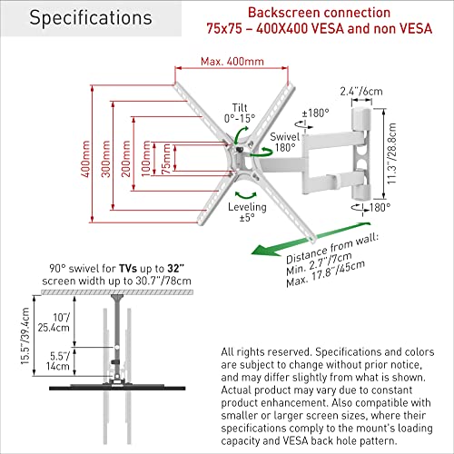 Barkan Supporto da parete VESA da 3400 W fino a 400 x 400 mm ruotabile, pieghevole, girevole e inclinabile per TV piatta/curva da 29 a 65"/74-165 cm