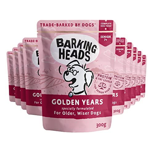 Barking Heads - Cibo umido per cani anziani, anni d'oro, pollo e salmone, senza aromi artificiali, ricetta senza cereali con livelli ottimali di proteine e grassi per cani anziani (10 x 300 g)