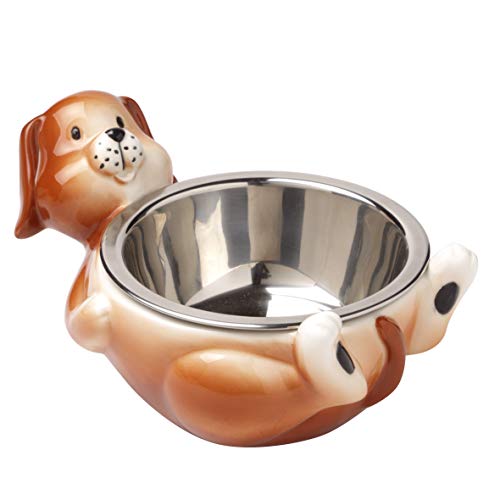 BARONI Ciotola in Ceramica da Interni per Cani e Gatti a Forma di Cane Marrone 20X13X10 cm