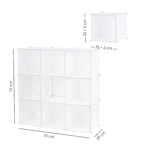 Baroni Home Mobile Componibile Salva Spazio, Organizzatore con Scomparti Impilabili in Plastica per Camera da Letto, Cabina Armadio, Ingresso, Bianco, 9 Scomparti, 117x37x111 cm