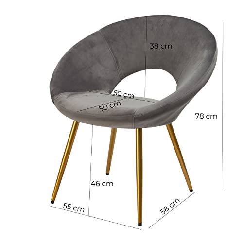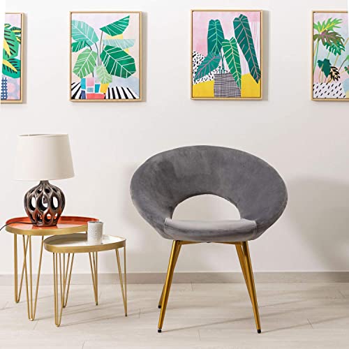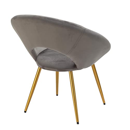 Baroni Home Poltrona Imbottita Circolare in Velluto con Gambe in Ferro Dorato. Poltrona da Ufficio o da Pranzo Super Confortevole e Seduta Ergonomica Grigio Tortora 55x58x78 Cm