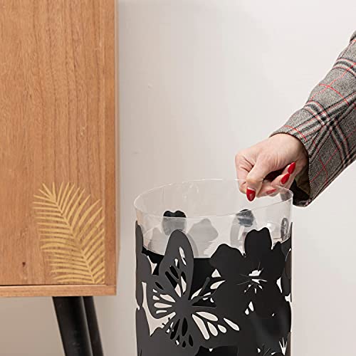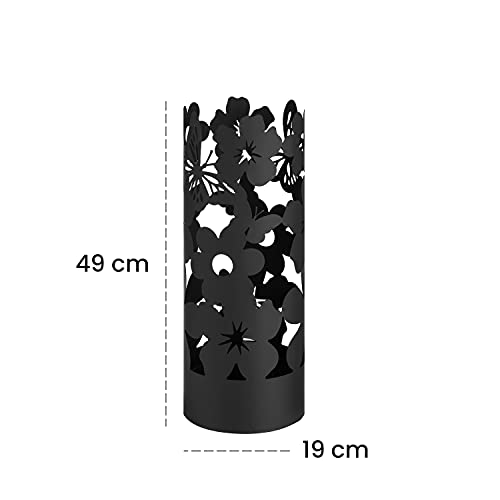 Baroni Home Portaombrelli Design Moderno Porta Ombrelli in Metallo Flowers con 2 Gancini e Vaschetta Scolapioggia Rimovibile 19X19X49 cm (Nero)