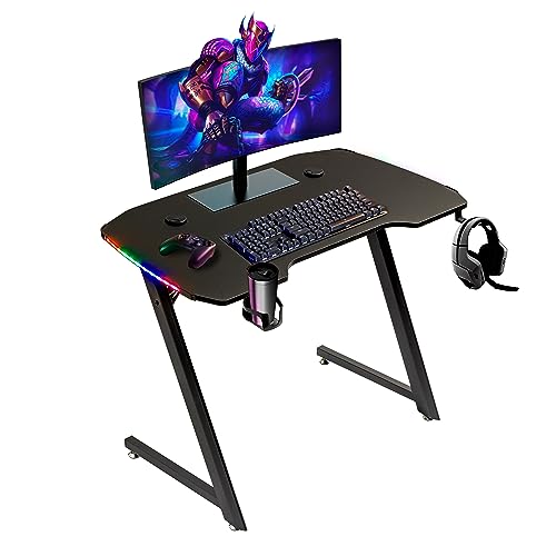 Baroni Home Scrivania Gaming per Computer Ergonomica con Supporto e Gancio Cuffie e Porta Bicchiere, Tavolo da Gioco in MDF e Acciaio, con Luci LED Multicolore,100x60 cm
