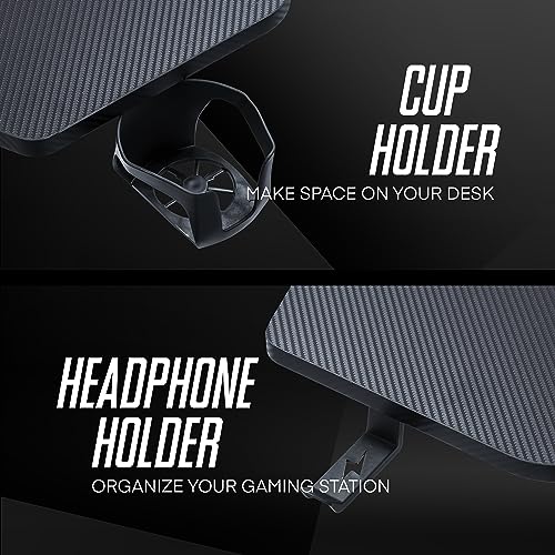 STABILE E RESISTENTE - La scrivania è realizzata con pannelli in MDF durevoli e resistente rivestiti con un tessuto texturizzato in carbonio, impermeabile, facile da pulire e resistente ai graffi. La base della scrivania in acciaio è pensata per donarti il pieno supporto e assicurarti che l'intera struttura sia abbastanza robusta da supportare tutti i tuoi accessori da Gaming.