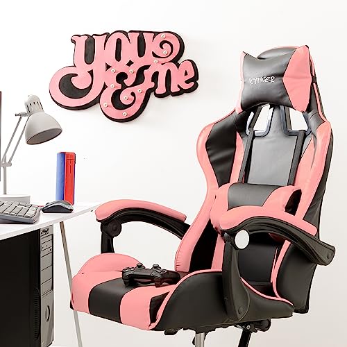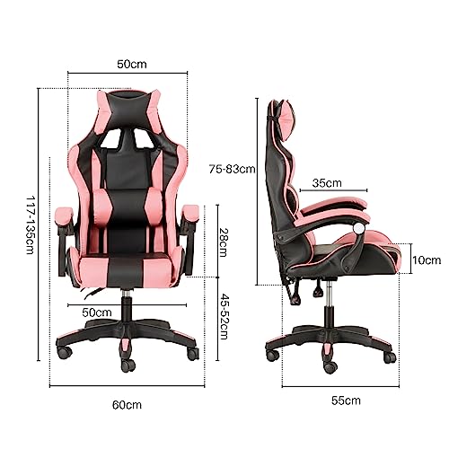 Baroni Home Sedia da Gaming Personalizzabile, Sedia Ufficio Ergonomica con Schienale Regolabile, Poggiatesta e Supporto Lombare, Rosa