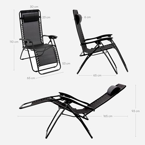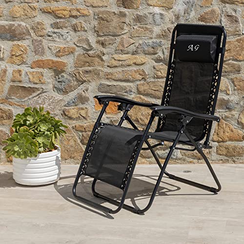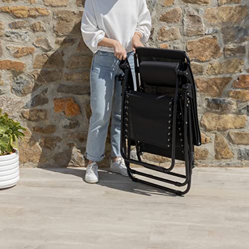 Baroni Home Sedia Sdraio Personalizabile Zero Gravity da Giardino, Chaise Longue Pieghevole da Esterno, Sdraio Salvaspazio per Piscina e Terrazzo, Poltrona Relax,165x65x93 cm (Nero)