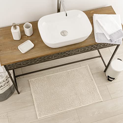 Baroni Home Tappeto da Bagno a Pelo Lungo Antiscivolo, Tappetino Lavabile in Lavatrice in Ciniglia con Fondo Antiscivolo, Assorbente d'Acqua per Vasca, Doccia e Bagno 50x80 cm, Panna
