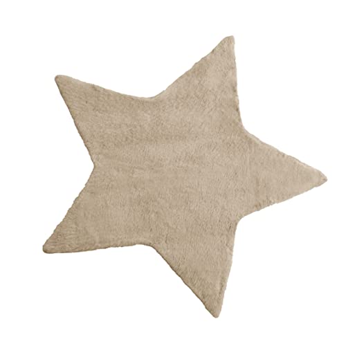 Baroni Home Tappeto a pelo lungo, Tappeto per bambini morbido, Tappeto Bambini Cameretta, Tappeto in Pelliccia Ecologica Morbido, Stella Beige, 90X90 cm