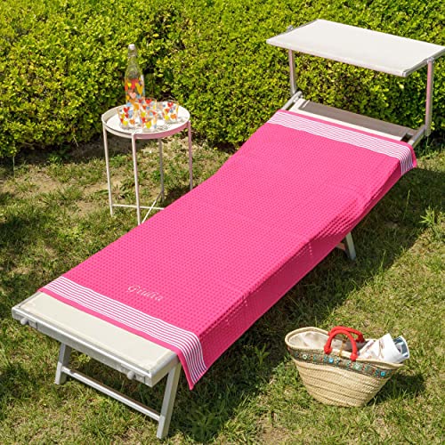 Baroni Home Telo Mare a Nido d'ape 100% Cotone Personalizzabile, Asciugamano Mare Super Assorbente, Telo da Spiaggia ad Asciugatura Rapida, 90x160 cm, Rosa Fucsia
