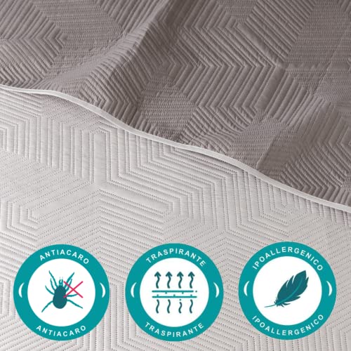 Baroni Home Trapuntino Copriletto Primaverile Estivo in Microfibra, Trapunta Estiva Singolo 170x250 cm - Tortora/Beige